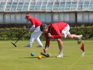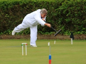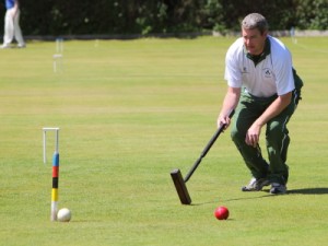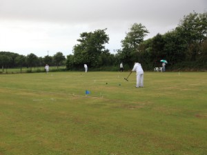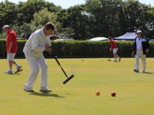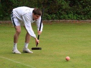 Kibble was feeling hard done by – a 2-foot cut on the DS peg ball hilled 3 inches and bounced off the peg missing to give Rigge a ball round. Then, after hitting back in and finishing three peels, a little promotion cannon to get a rush to the peg found some different paces, lumps of frog grass and stymied the rush! Rigge was brave with his choice of lift and hit with the hoop 1 ball for a finishing turn but tried 5 times to get a peel and finished 4-back and peg. Kibble missed but Rigge failed to finish, allowing Kibble to join then to peg out one, then two balls to leave penult vs. peg. Some lovely tactical play ensued with Rigge eventually running rover have having to jump over it to hit the peg or the ball behind the peg. Unfortunately his just was inches short and Kibble pegged out to get the +1 missing score in the set.